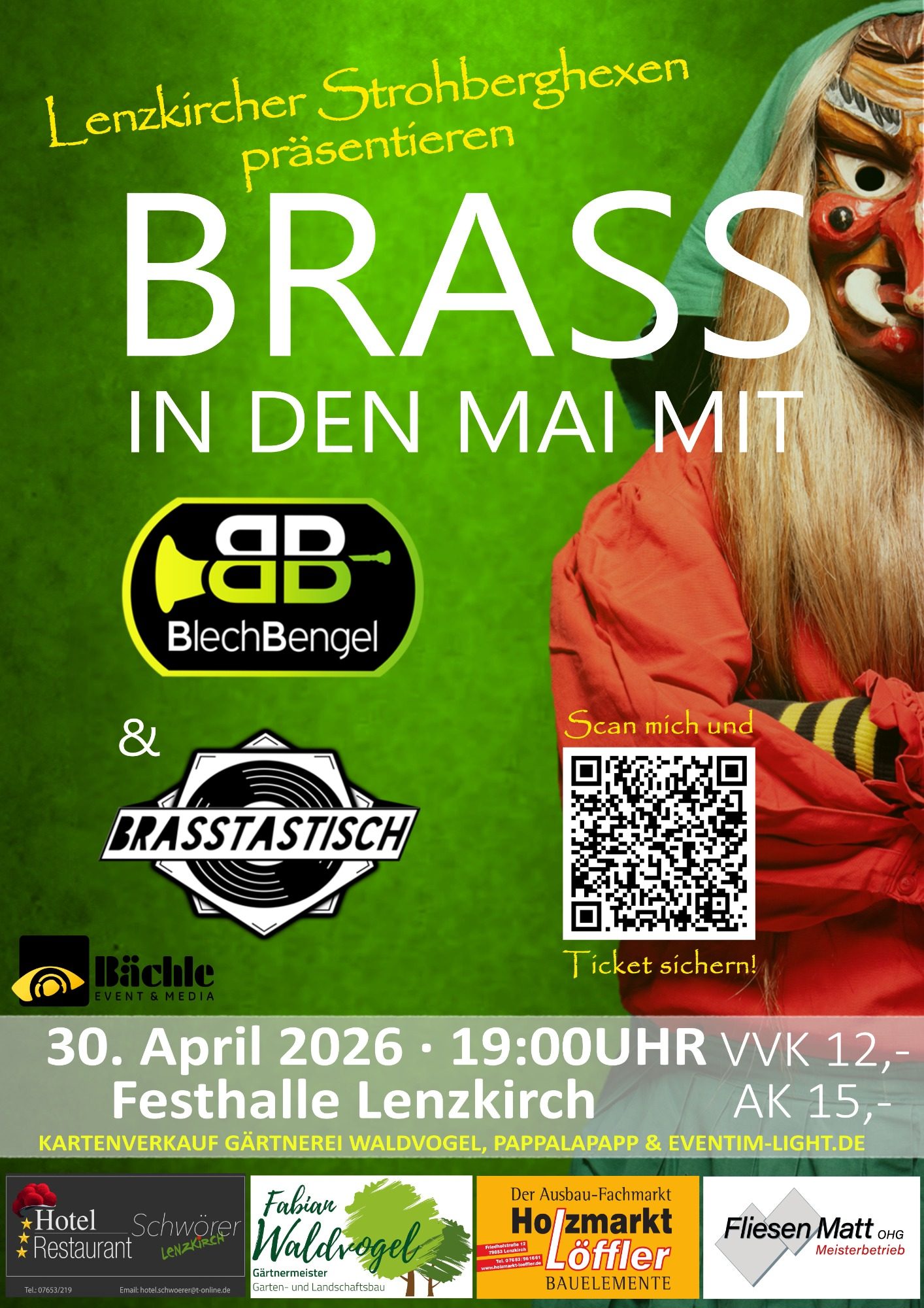 Mit BlechBengel & Brasstastisch wird die Festhalle Lenzkirch am 30. April 2026 zum Hexenkessel. 🔥